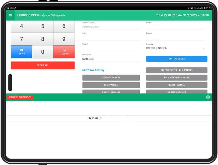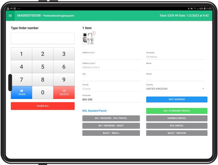 Create Courier labels with tracking numbers in bulk and despatch Orders in bulk.